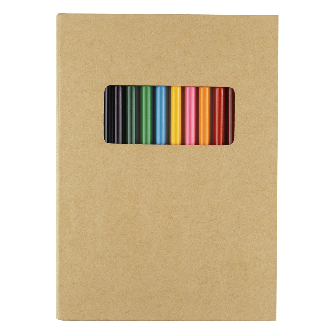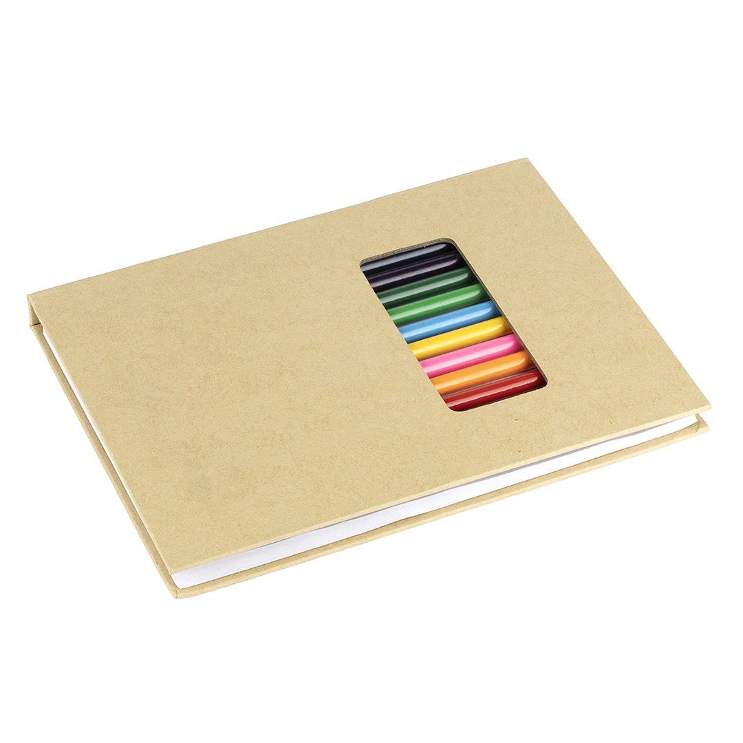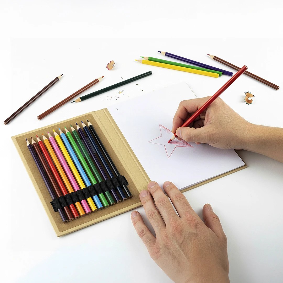 Set za crtanje • 12 bojica • 70 praznih bijelih listova • Kartonske korice • Prozor za pregled boja • Prikladan za djecu i školsku uporabu